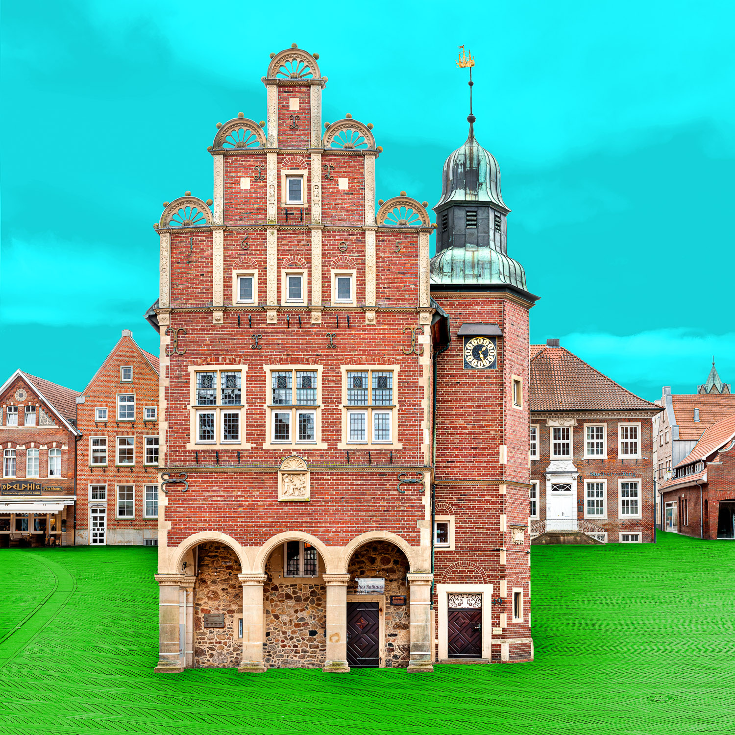 Das Rathaus Meppen als poppiges Fotokunst Wandbild